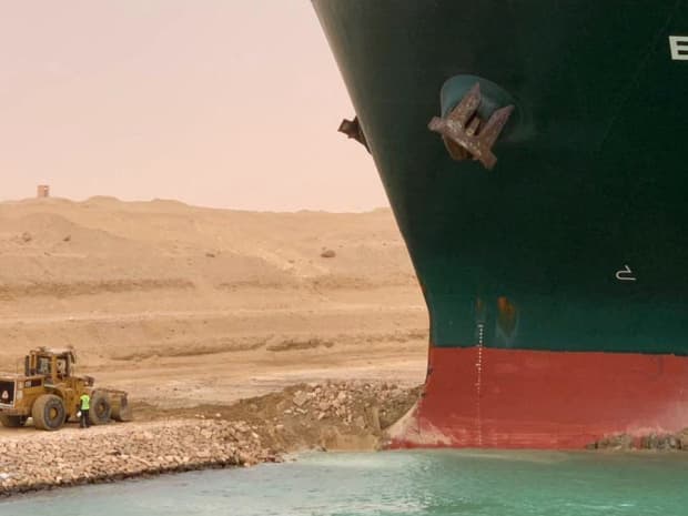 Wedged cargo ship blocks egypt's suez canal 4:43 watch now: